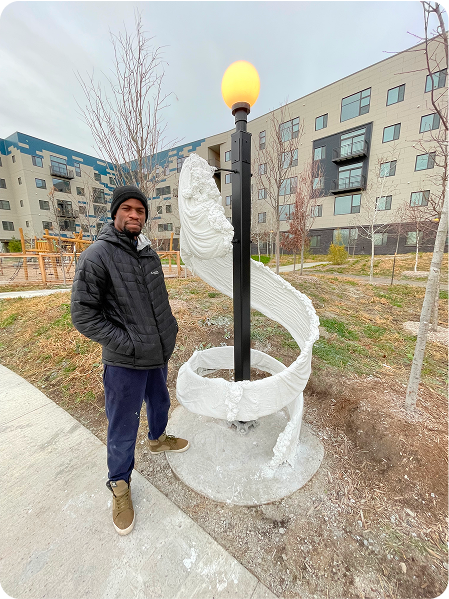 My work uses form and flow to transform everyday infrastructure into sacred space. Each curve holds meaning. Each texture echoes movement, memory, and protection. Whether placed in a park, plaza, or public walkway, these sculptures offer both beauty and function.